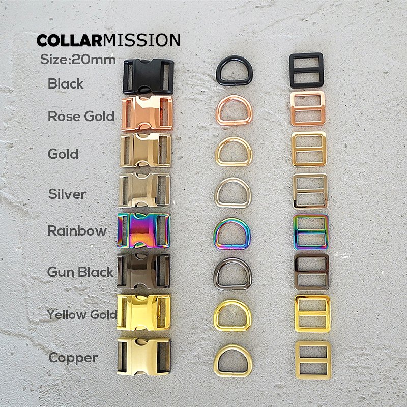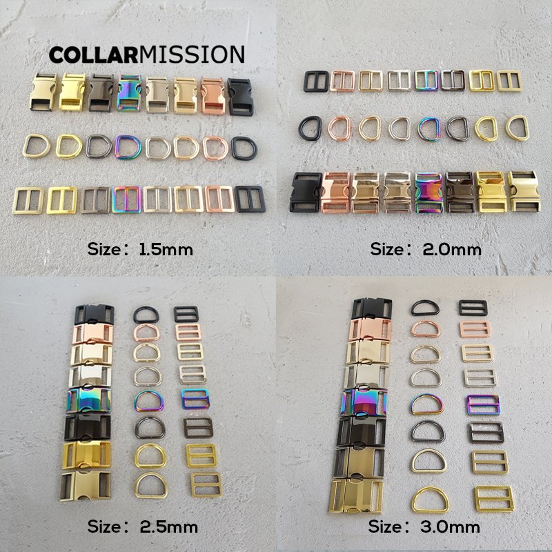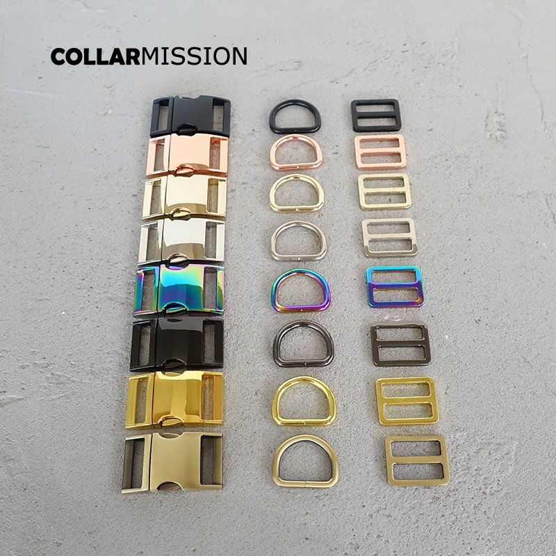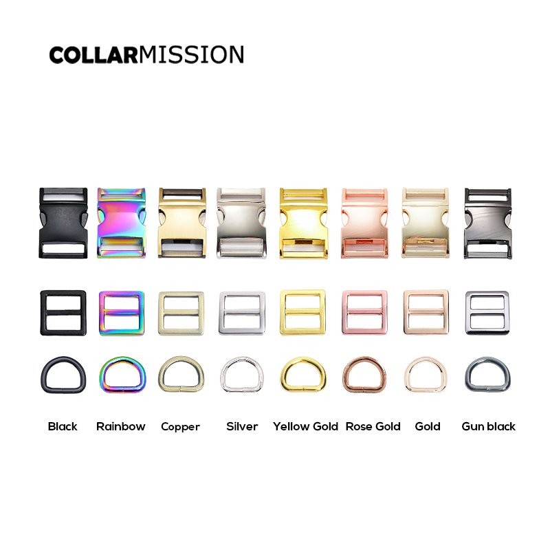 100set/lot (metal buckle+Tri-Glid+D ring)for garment luggage backpack cat dog collar DIY accessory 8 Colours 15mm to 30mm 5 sizes