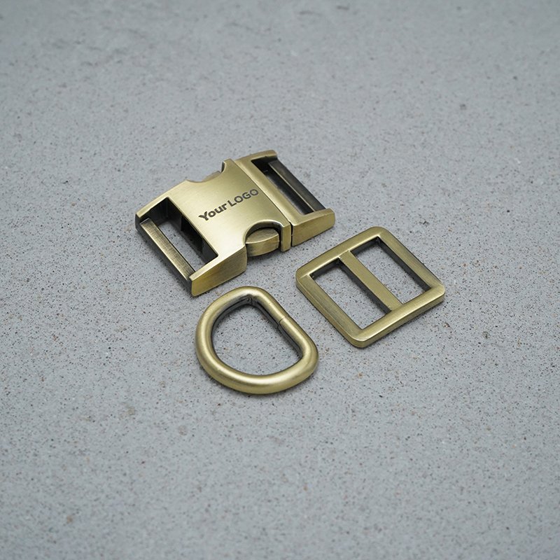 20set/lot (metal buckle+adjust buckle+D ring+metal dog clasp) We provide laser engraving service customize LOGO 7 colours